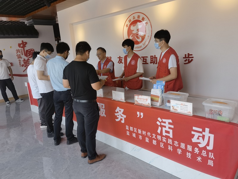 6月30日下午盐都区科技局联合县级志愿服务总队赴尚庄镇开展科技普法活动。